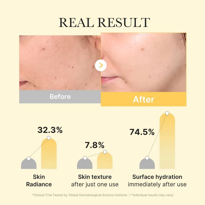 Гидрогелевая маска сочетает осветляющие, увлажняющие и восстанавливающие компоненты. Устраняет тусклость и придаёт коже эффект «стеклянной» кожи. Снижает покраснение и ускоряет заживление воспалений, обладает антиоксидантной активностью, выравнивает тон и устраняет тусклость. Меняет цвет на прозрачный по мере впитывания, сигнализируя об оптимальном усвоении активов.